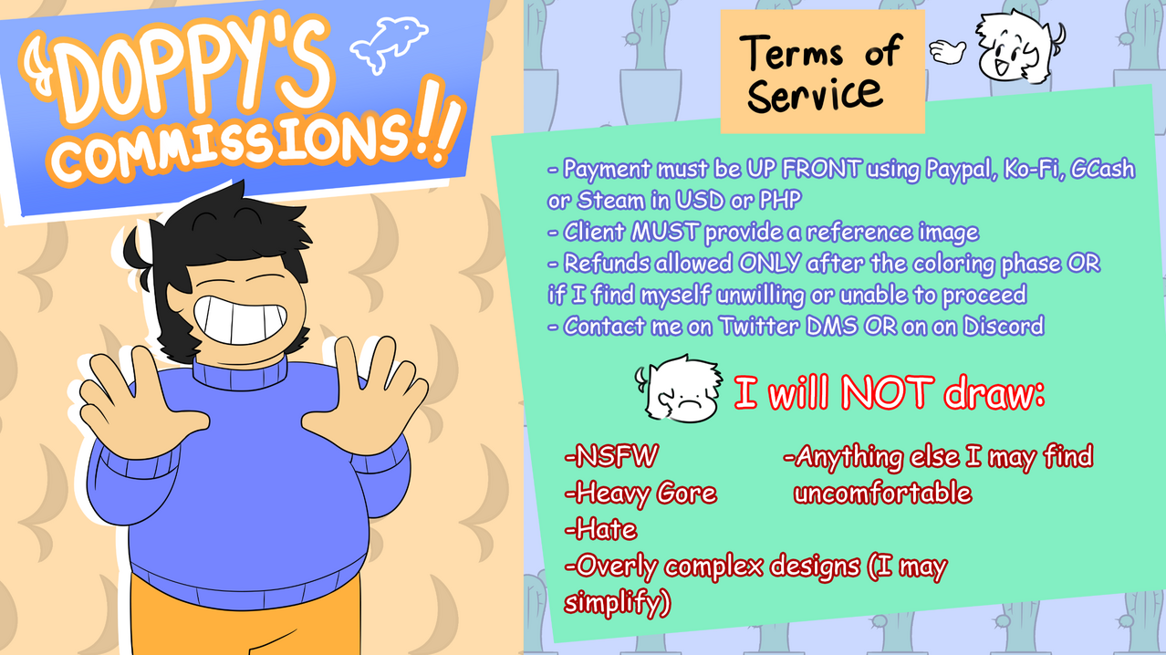 Hello! I'm Doppy! I'm an artist from the Philippines, and I'm studying animation in IAcademy. I specialize in characters and illustration.